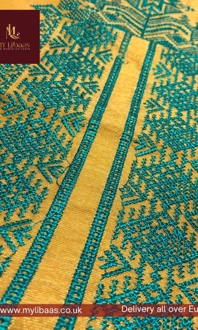 • Intricate Embroidery: The fabric features stunning embroidery with traditional motifs that highlight the cultural richness of Pakistani suits and Pakistani style dresses. The detailed craftsmanship adds a touch of elegance and sophistication, making it ideal for both festive occasions like Eid outfits and casual outings.