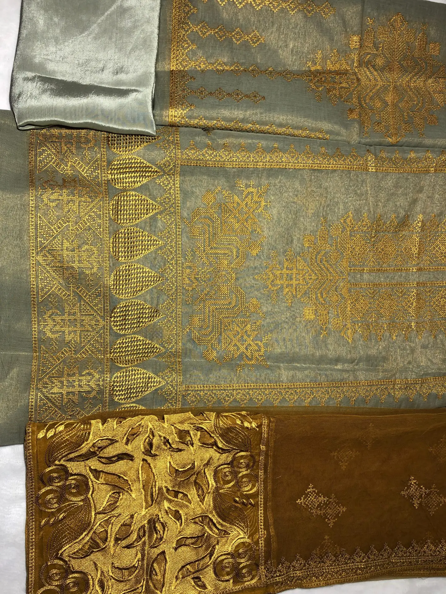 • Fabric Dimensions: The suit includes a generous fabric length of 5 meters, providing plenty of material for your design. It comes complete with matching embroidered sleeves and a coordinating dupatta, making it a complete Asian dress set.
