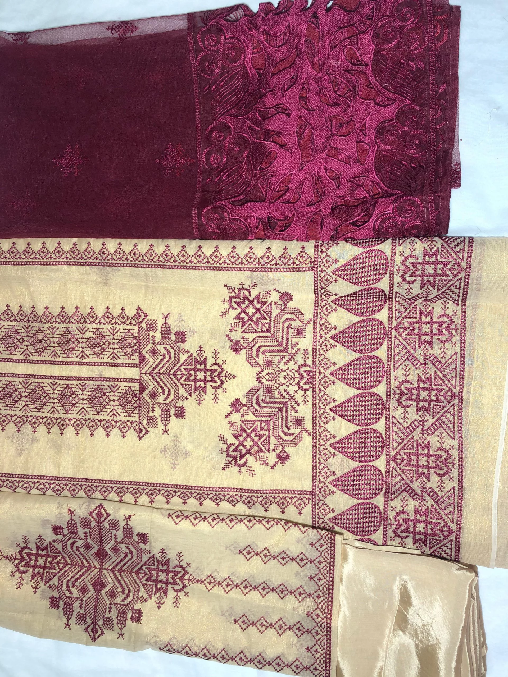• Fabric Dimensions: The suit includes a generous fabric length of 5 meters, providing plenty of material for your design. It comes complete with matching embroidered sleeves and a coordinating dupatta, making it a complete Asian dress set.