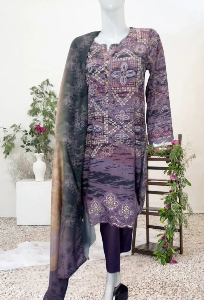 3 Piece Stitched Collection By Tawakkal Fabrics, Attractive & Elegant Staple Collection comes with: